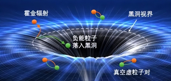 凭证量子力学的不笃定性旨趣,在黑洞的事件视界边缘,会不停产生成对的虚粒子,其中一个粒子会被黑洞归拢,而另一个粒子则会逃遁到寰宇中,成为可被探伤的放射,这就是驰名的“霍金放射”。