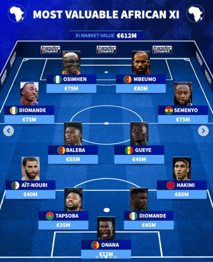开云(中国)官网 德转非洲最贵阵: 奥斯梅恩、姆伯莫双时尚, 阿什拉夫在列