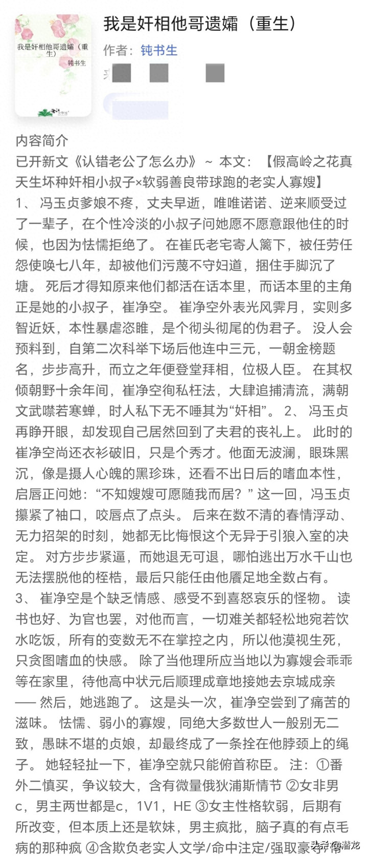 东说念主设反差,荣达胁制敦厚东说念主体裁,女主大大的敦厚东说念主。女主村生泊长的敦厚东说念主,跛腿,男主名义征象霁月骨子阴湿疯批男一枚,对嫂嫂成心思后,还在脑海里幻念念把贵女的腿按嫂嫂身上。