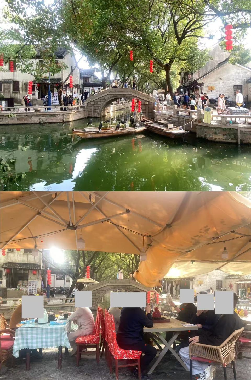 李女士暗意拍摄同里三桥的最好位置被几个大遮阳篷占据