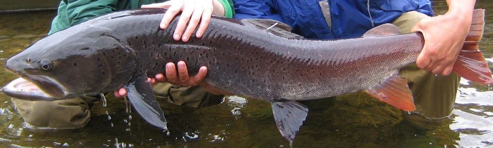 ▲算作大家体型最大的鲑科鱼类,哲罗鲑对水质和河流连通性相配明锐。上图是一条在蒙古西北部乌尔河(Uur River)拿获的哲罗鲑(Hucho taimen)。该个体在纪录相关生物学数据并完成标志后被从头放归萧疏。