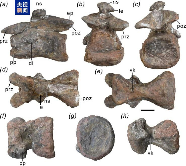 △祥云龙的中后部颈椎,比例尺为10cm