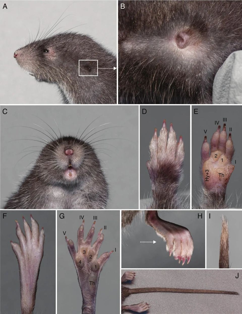 ▲上图:小耳印加溪鼠(Incanomys parviauris)标本(编号MUSM 48688)的风物特征详图。论文出处:Sánchez-Vendizú P, Abreu E F, Pacheco V, et al. (2026)